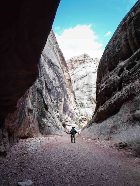 Grand Wash is a dry gravel streambed that cuts through the Fold. Even though it was a fairly cool day, the hike was pretty warm due to the heat radiating from the rock walls: